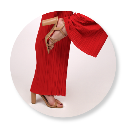 This red pleated jumpsuit is fun, flowy, and easy to wear. The strapless neckline and wide legs make it a great choice for events and very special days!