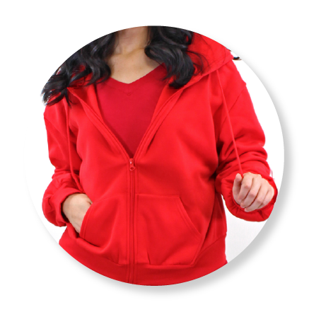 A soft red zip-up hoodie layered over a matching red top keeps things warm and casual. With black skinnies and sneakers, it’s a simple basic outfit that works for everything!