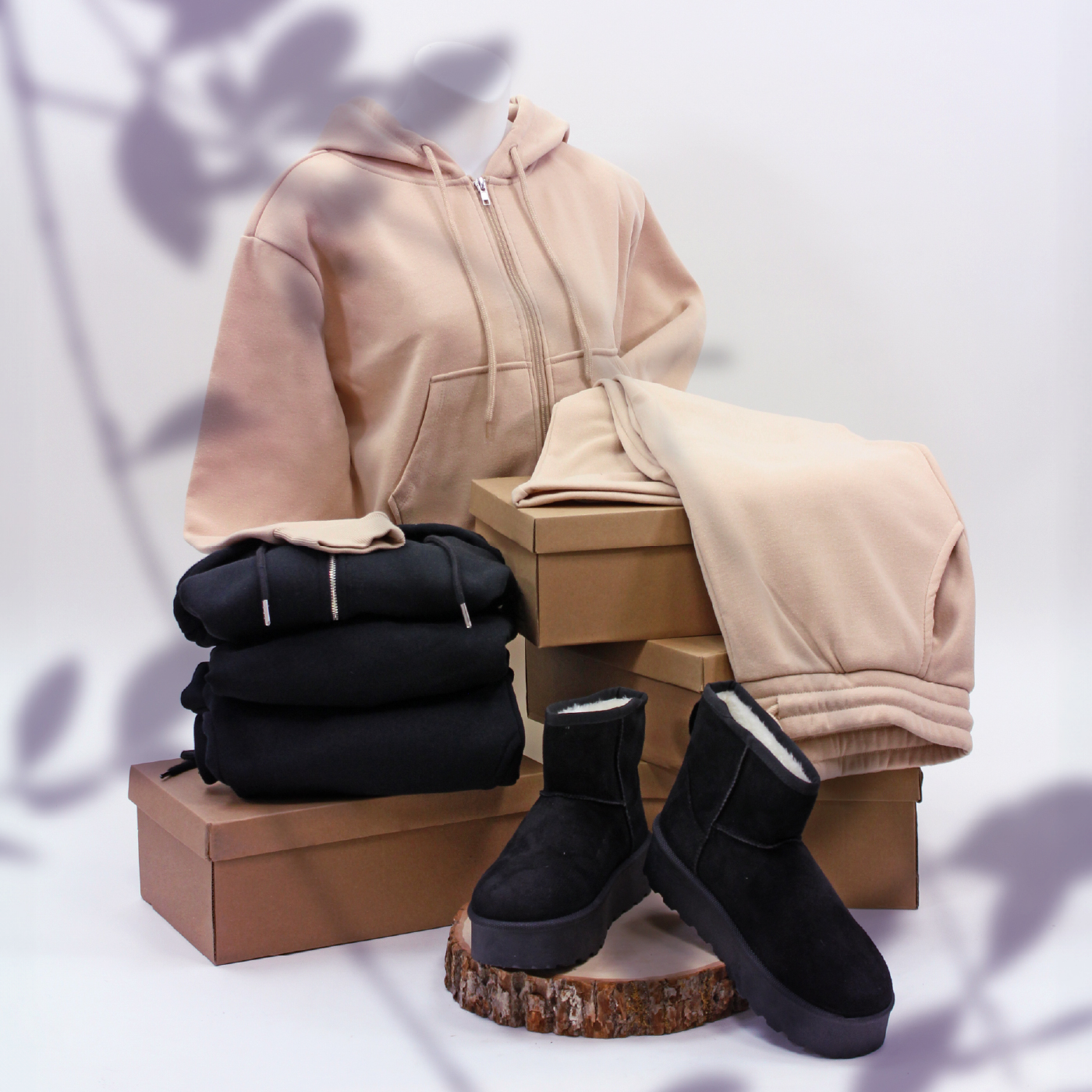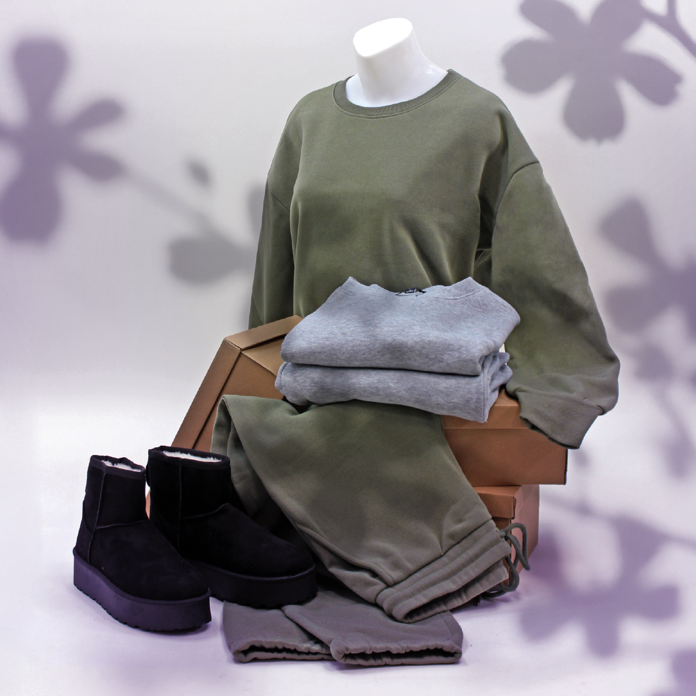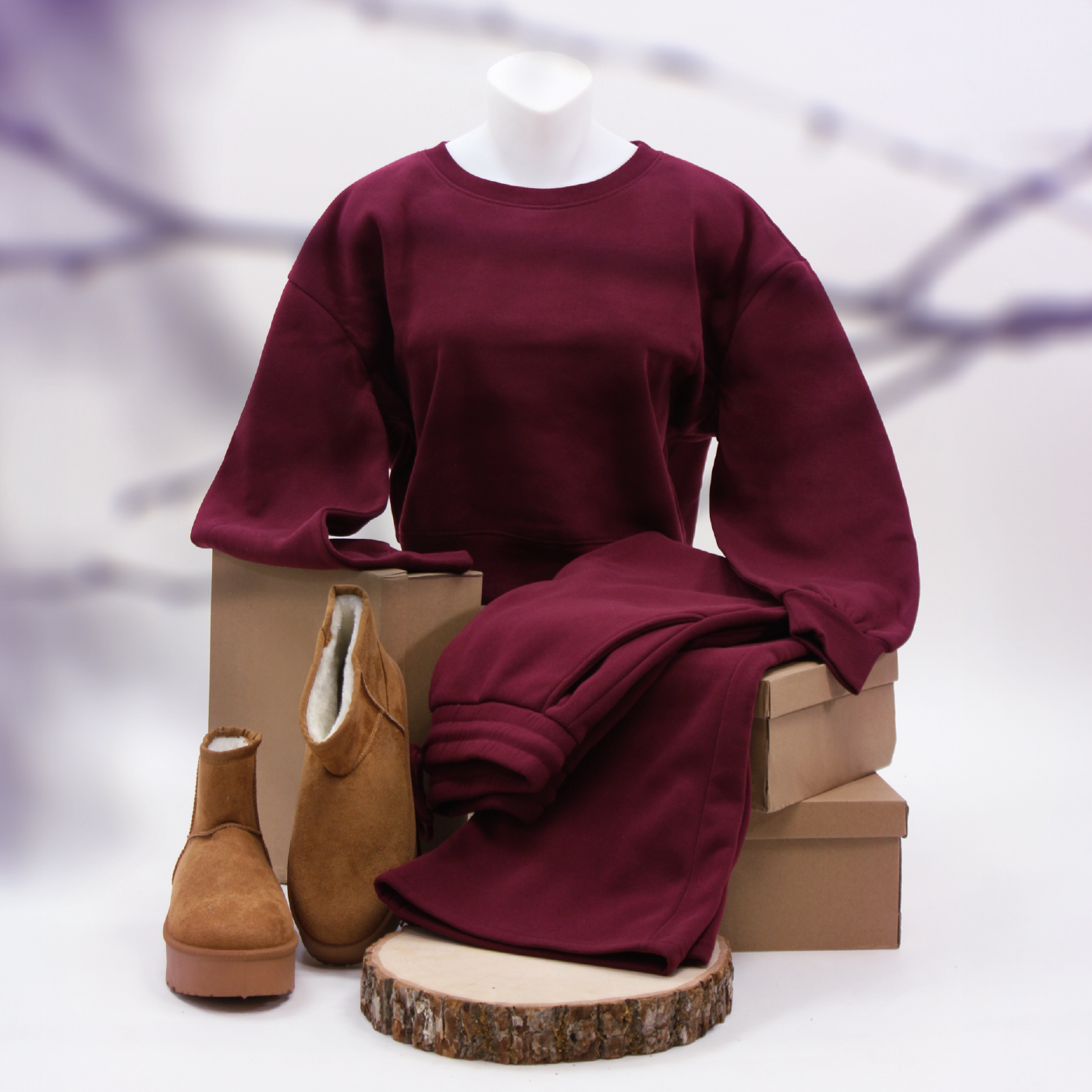 The “Comfy Girl” uniform starts here. Plush fleece tops and joggers that prove cozy can serve a look. Mix and match muted olive, deep burgundy, and beige for that calm-luxury vibe.