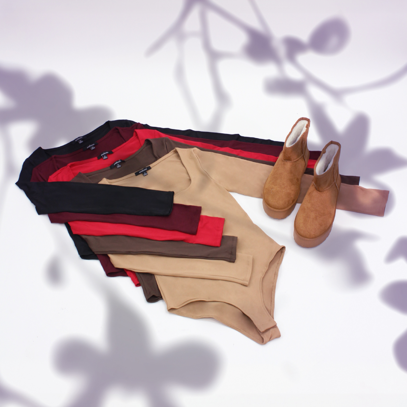 Soft, stretchy, and sleek, these long-sleeve bodysuits come in a gorgeous array of Fall-friendly colors.