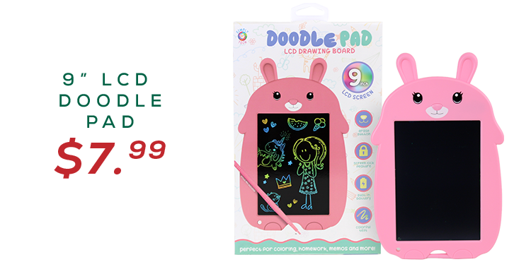 Have a compulsive doodler in the family that is a threat to every sheet of paper in sight? We have the perfect gift for them! This 9” LCD doodle pad (contained in an adorable bunny shaped housing) allows you to draw colorful lines and erase with one touch! The screen can be locked to store a drawing in progress or preserve a complete masterpiece. Use it to write memos, take notes or to draw endlessly without waste! Best of all, this doodle pad can be under the tree ready for a loved one to open on Christmas morning for just $7.99!