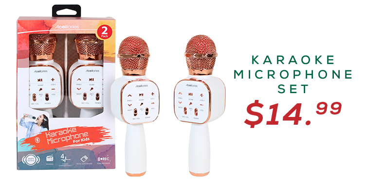 Does the next Selena or Taylor Swift live under your roof? Nurture that budding talent with the Acellories 2 microphone Karaoke set which allows you to record your latest performance and even use 4 different voice changing effects. Even better, since there are two, duets are not just possible, they are encouraged! Gather the family around and sing all of your favorites and laugh for decades to come over the memories you will make with this impactful and joyous gift for just $14.99!