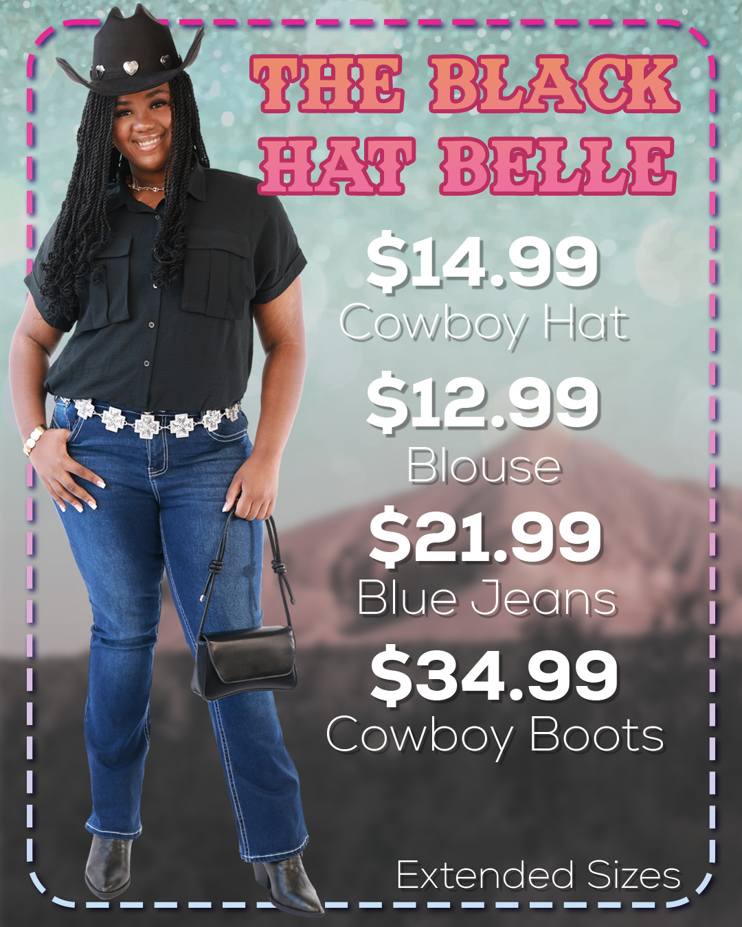 Finding something chic to wear to the dancehall is no hassle with this curated outfit. We have many dresses that pair well with boots, a cowboy hat and a statement belt, but this blush pink lace dress is a perfect spring option to pair with white boots and a hat. Best of all, this pink pairs really well with the turquoise stones on our matching Concho belt and Cowboy at and we happen to have a lovely turquoise bracelet to complete the look! Needless to say, you’ll have no problem finding a dance partner in this ensemble!Finding something chic to wear to the dancehall is no hassle with this curated outfit. We have many dresses that pair well with boots, a cowboy hat and a statement belt, but this blush pink lace dress is a perfect spring option to pair with white boots and a hat. Best of all, this pink pairs really well with the turquoise stones on our matching Concho belt and Cowboy at and we happen to have a lovely turquoise bracelet to complete the look! Needless to say, you’ll have no problem finding a dance partner in this ensemble!
